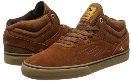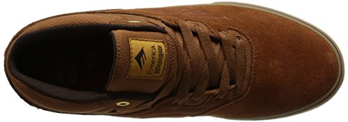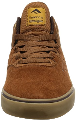 Brandon Westgate Skateschuh von Emerica  Der Westgate Mid Vulc trägt nicht nur den Namen des Pro-Skaters. Brandon Westgate steckt auch hinter dem Design des Skate​schuhs. Die vulkanisierte Gummisohle und der einteilige Zehenbereich sorgen für maximale Strapazierfähigkeit. Die Lasche und Seitenwand mit atmungsaktivem Mesh garantieren eine gute durchlüftung des Schuhs.  FeaturesMesh an der Zunge und mittleren Seitenwand für mehr AtmungsaktivitätLeicht steifere Zunge für sicheren HaltAsymmetrischer, einteiliger ZehenbereichVulkanisierte KonstruktionEmerica Triangle Tread Muster für Grip und Langlebigkeit