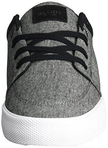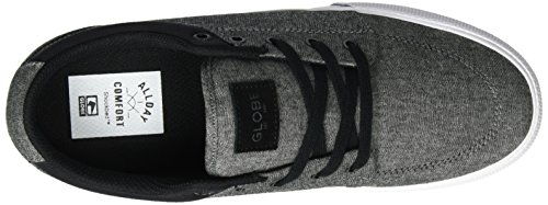 GS SneakersDie Globe GS Skateshoes lassen mit ihrem absolut klassischen, schnÃrkellosen Schnitt nicht nur die Herzen überzeugter Skateboarder hÃher schlagen. Der sportlich zurückhaltende Style der Sneakers passt zu absolut jedem Outfit und wird dabei den Ansprüchen an einen dauerhaft strapazierten Skateschuh mehr als gerecht. Die vulkanisierte Gummisohle garantiert einen perfekten Grip sowie eine lange Lebensdauer. Angriffsflächen wie der klassische Ollie-Bereich sind nicht nur gut vernäht, sondern durch das robuste Veloursleder auch außerordentlich belastbar. Der gut gepolsterte KnÃchelbereich und die weiche Innensohle schützen die Gelenke bei Stürzen und harten Landungen.FeaturesStylischer Skateschuh von GlobeSehr gute VerarbeitungStrapazierfähiges VelourslederSehr gute PolsterungAbsolut bequem