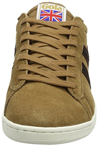 Der Equipe ist ein klassischer Sneaker für Herren von Gola für Freizeit und Alltag. Klassischer Sneaker für Herren von Gola der ein sportliches Äußeres mit maximalem Tragekomfort kombiniert und seiner Linie treu bleibt. Die Equipe Suede Schuhe sind genau so komfortabel wie auch stylisch. Das Obermaterial aus hochwertigem Veloursleder kombiniert mit dem Innenmaterial aus Synthetik und Textil garantieren dir einen hohen Tragekomfort. Abgerundet wird das schlichte und sportliche Design durch die angedeuteten Gola Streifen.Gepolsterter Einstieg für ein komfortables An- und AusziehenLeicht profilierte Sohle für besten Halt auf allen UntergründenSuedeleder ist strapazierfähig und langlebigWarnhinweis: Keine/ nicht relevantAnlass: CasualGrößenhinweis: Fällt passend ausObermaterial: SuedelederInnenmaterial: TextilInnensohle: TextilAußensohle: SynthetikAbsatzform: FlachAußensohle – Eigenschaften: AntirutschMuster: UnifarbenSchaftdetail: GepolstertSchafthöhe: LowSchuhspitze: RundSchuhweite: NormalVerschluss: SchnürungZustand: Neu